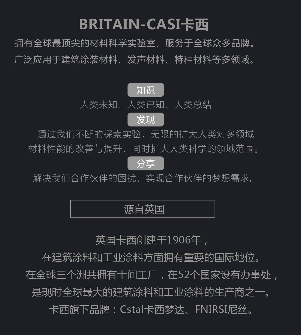 卡西源自于英国的高端墙艺涂料,厂房保证原材料的转化和各种产品的直接生产,工厂每一个部门,每一个生产过程都经过质量控制体系ISO9001和14001认证的环境管理体系,这一切都使我们能够提供符合法国A+认证的艺术壁材产品。